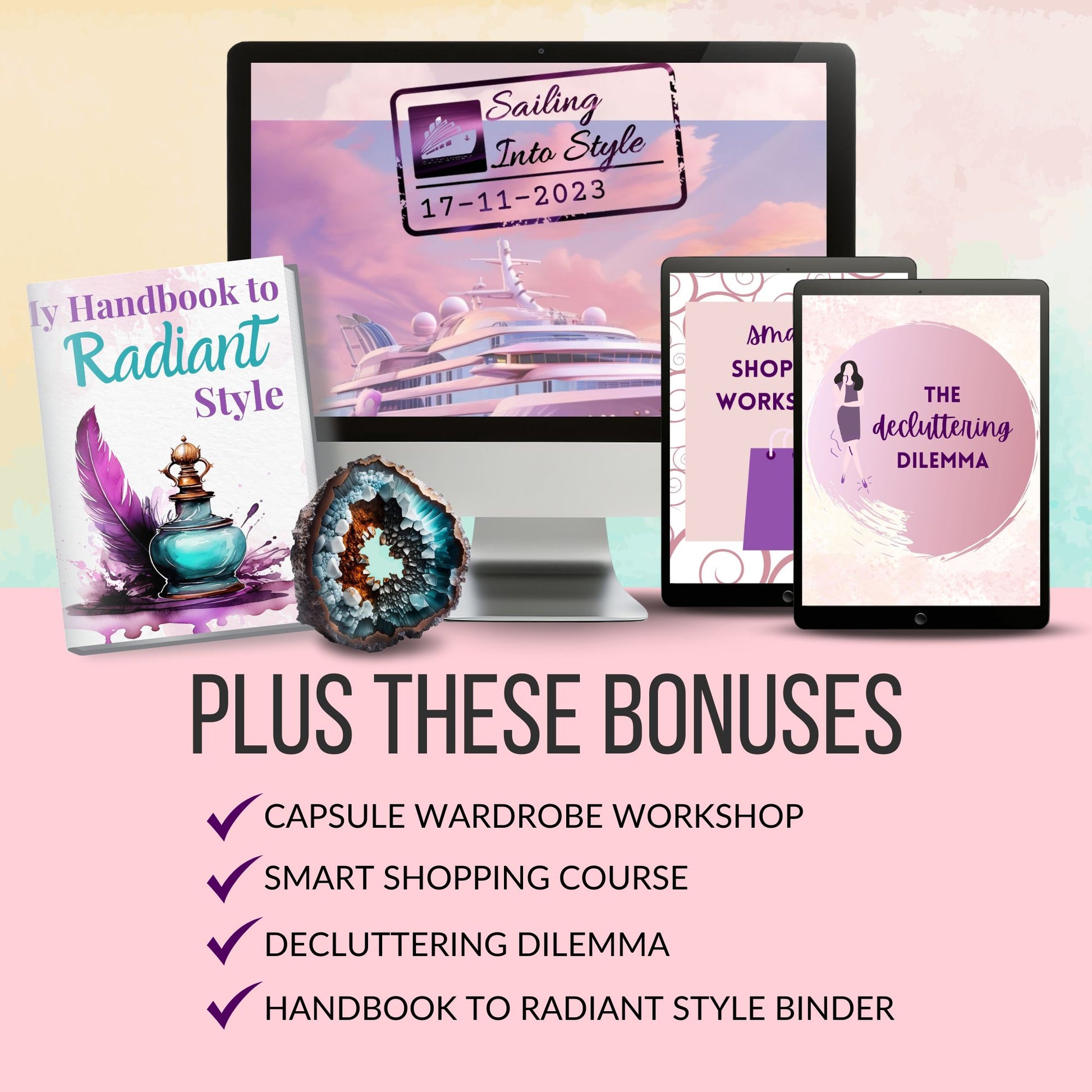 - Bonus: Decluttering & Shopping Mini‑Courses – expert shopping strategies, interactive worksheets and decluttering lessons to help you shop intentionally and let go of what no longer serves you (value $97).